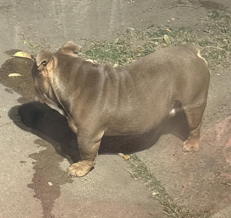 message simonexoticcamp about this ad Rehoming 19 month old chocolate tri male English bulldog. Akc registration in hand. Will get cherry eye removed but price will increase. Good quality bulldog. Located in Houston Texas. Text 3465437514. |