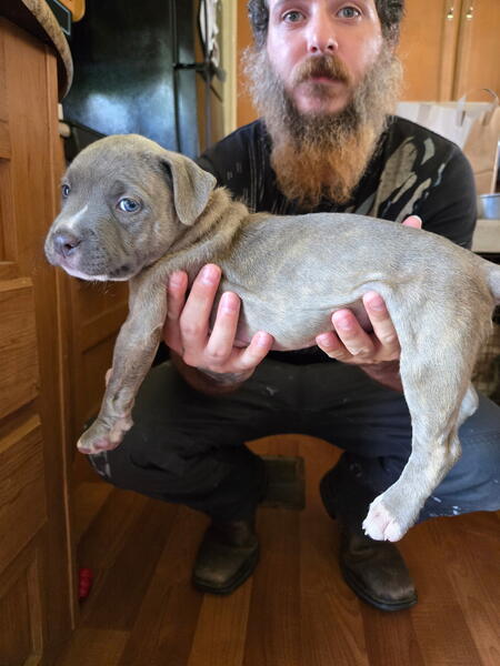 message midnightxrush about this ad 7 week old blue female cane Corso pit mix. Born on May 7th, 2025 and will be 8 weeks old on Wednesday, July 2nd, 2025. Appointment set for vaccinations and deworming on Saturday July 5th. Will be available for pick up same day or next day, depending on location. |