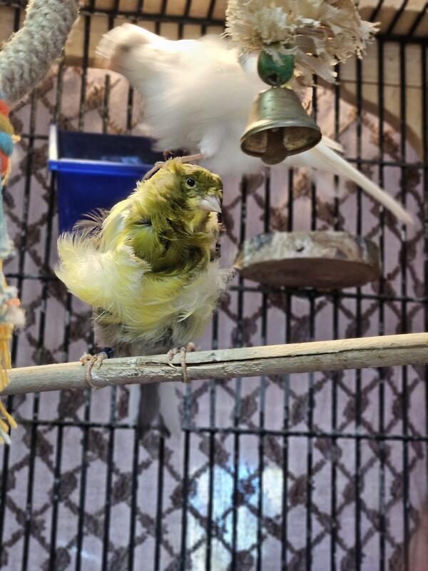 Pair of 2.5 year old Parisian Frill canaries.