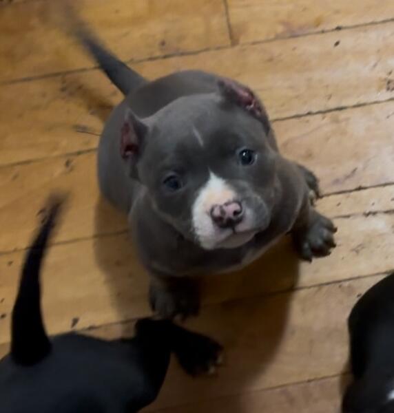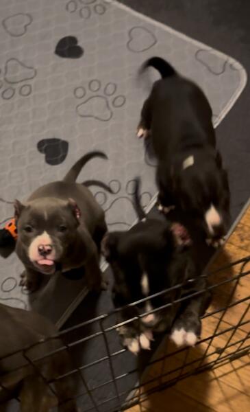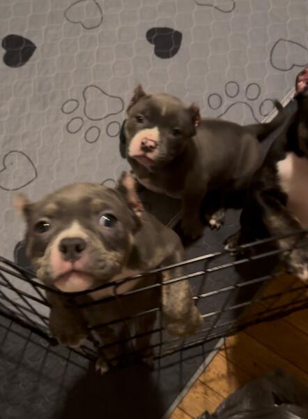 message pjcanady about this ad We have four (2 females/2 males) American bully pups left two are blue Trindle and two are black Trindle all will come with six week and eight week shots ears cropped and ABKC paperwork in hand pups are eight weeks and ready to go. They have already started potty training and socialization. Dont hesitate to text if interested more pictures are available on.FB and IG @CanCanKennels #2l7-48o-o7o0 price is slightly negotiable. Pics of parents and grandparents are posted with pictures of the pups. Sire is a pocket and damn is a classic. |