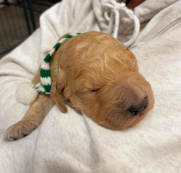 message amhaskin04 about this ad Standard size Goldendoodle puppies, born November 14, 2025 3 male, 1 female available Mom is F1 Goldendoodle Dad is F1b Goldendoodle |