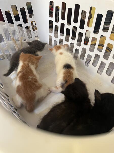Kittens in Waseca ready to go all kittens are female, except for the one with the most orange is a male