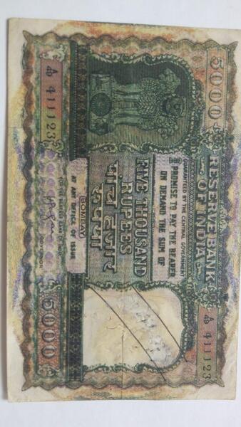 message cpnigam about this ad Extremely rare demonetized 5000 Rupees Note of Government of India, is offered for sale to affluent investors for pride collection. It is signed by H V R Iyengar and issued by Bombay Office. It is in very good condition. Interested buyers may contact me at WhatsApp no. +91 8789894127 |