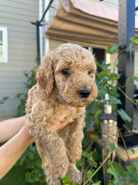 message toffee10goldendoodle about this ad F1BB Standard Goldendoodle Puppies Hypoallergenic, Furnished Faces & Ready for Forever Homes! Looking for the perfect family companion thats smart, affectionate, and doesnt shed? Meet our beautiful litter of F1BB Standard Goldendoodle puppies the ideal mix of intelligence, soft hypoallergenic coats, and teddy bear charm, raised with love in our home. Born July 8 Ready for new homes September 1 Certain colors or genders may be priced up to $200 more due to high demand You can reserve your puppy now with a $300 deposit pick your favorite before they're gone! Available Puppies: We have 8 adorable Goldendoodles looking for their forever families: 5 Males 3 Cream 2 Apricot/Red 3 Females 1 Cream 2 Apricot/Red All puppies have furnished faces that signature teddy bear look Goldendoodles are famous for! Expected adult weight: 5065 lbs Coats: Curly to wavy, non-shedding and allergy-friendly About the Parents: Mom: Cream F1B Standard Goldendoodle sweet, calm, loving temperament Dad: Purebred Red Standard Poodle intelligent, gentle, and from high-quality lines Both parents are standard size, non-shedding, and have excellent temperaments and coats. Why Choose Our F1BB Goldendoodles? Extremely hypoallergenic great for allergy-prone homes Non-shedding coats soft and easy to manage Furnished teddy bear faces fluffy, full, and photogenic Raised at home daily handling, socialized with kids and household noise Smart & trainable perfect for families, therapy prospects, or first-time dog owners message toffee10goldendoodle about this ad |