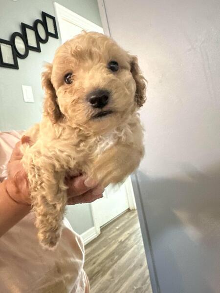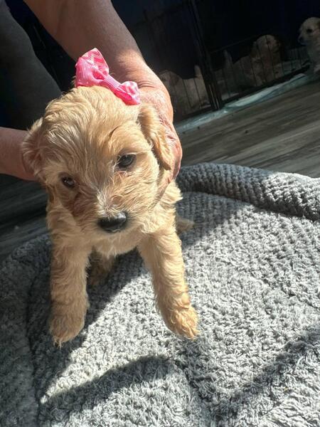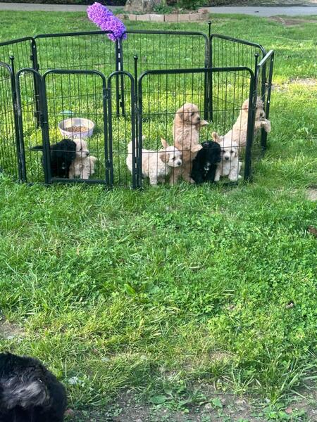 message yesseroj about this ad I have seven puppies two female and 5 male they do not have the vaccine's. The puppies were born March 31 and are ready to go to there new homes . The mom is mix goldendoodle with poodle and the dad is full goldendoodle . Any more questions please feel free to message me . Price negotiable |