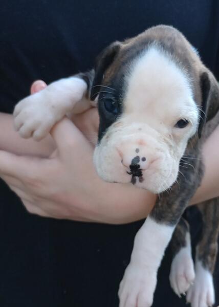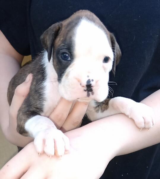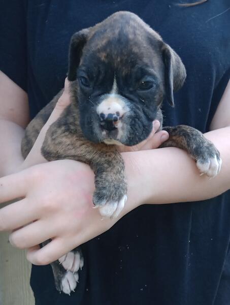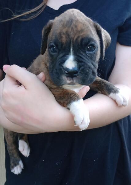 message hthrvn3905 about this ad I have 2 brindle males and 2 females available. I own mom and dad. They are seven weeks old. They will be ready for their furever homes around November 21st when they are 8 weeks old. They will come with all AKC paperwork, health certificate from our vet and first round of shots. |