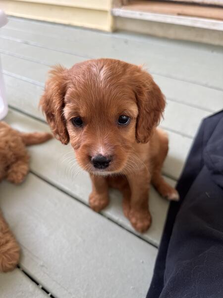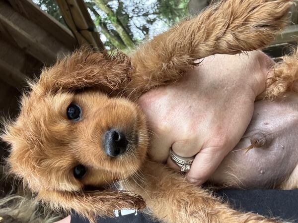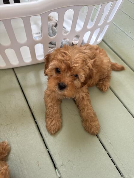 message bigredbarnpets about this ad Beautiful cava poo puppies ready now born on May 18, 2025 first vaccinations vet check dewormed ready for homes one female two males |