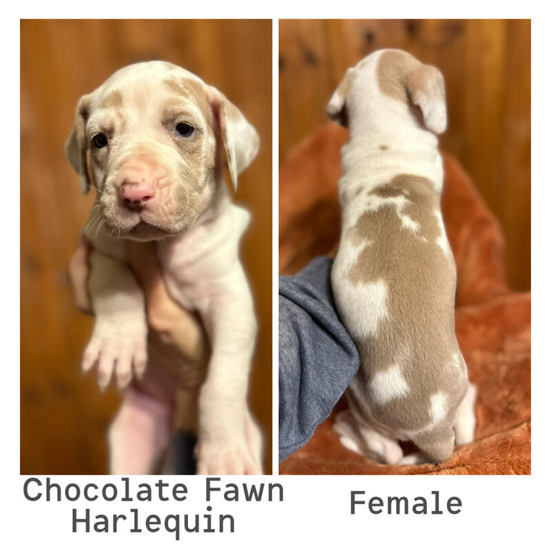 message cardinalpointdanes about this ad Ready to go Feb 3, born 12/8 Vet check, first shots, microchipped, and worming from 2 weeks. 1 month free health insurance through Trupanion and Embark discount card Go home bag with containing paperwork, toys and puppy goods $400 deposit, remainder due at pick up. Both parents on site. I work with transporters. FaceTimes welcome. |