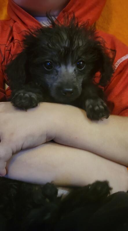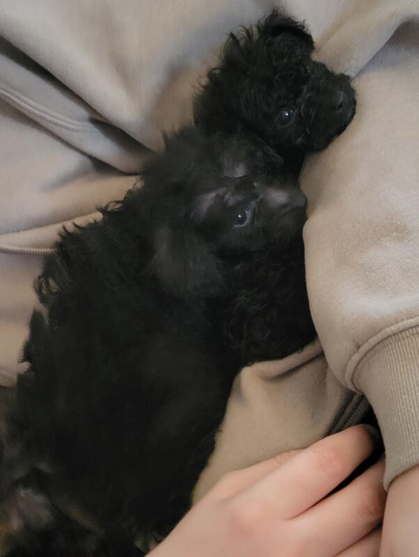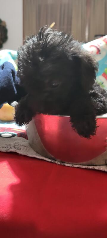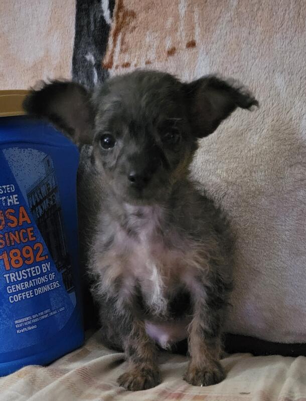 message horselover about this ad Can go to forever home now.Hello I am posting this post for my brother in law. I have 2 black and 1 meral .3males is black .been dewormed and first shot .i do my self no vet. Very playful . . Mom is toy poodle meral 5 pounds and dad chinesecrested 10 pounds. can meet .meral $800 and black small 700and big boy 500. NO papers. tiny male weighed 1pound 12oz .meral male weighed 2pounds 9oz .chunk male 2 pounds 5oz.1.2.26 |