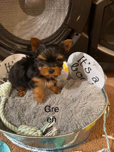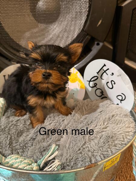 message tangyc about this ad I have 5 males Yorkies that will be available in November. Their tails are docked, dewclaws removed, healthy and happy. They will come with all age appropriate vet care. Parents are 4 lb traditional dad and 6 lb chocolate female. |