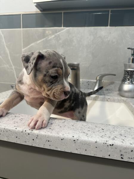 message primetimebullies about this ad 5 Week Old Standard American Bully Puppies for Sale. All puppies come ABKC registered and first round of shots. Ready to go to forever homes 12/16/2024. 3 Males and 4 Females available. Call or text 201-362-3439 for more information |