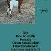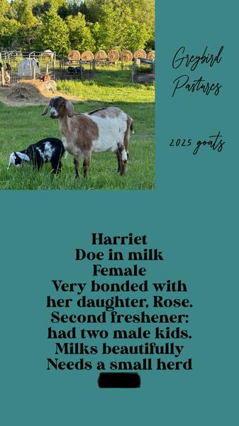 message greybirdpastures about this ad Wethers, doelings, does in milk! Not registered, great chance to get a pet or family milk goat for a good price! Wethers are 90-150, doelings are 180-250, does in milk are 300 each. Photos of all can be seen here: Please use our Google form to send us your information and express interest in purchasing a goat. |