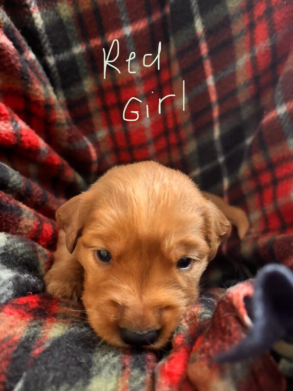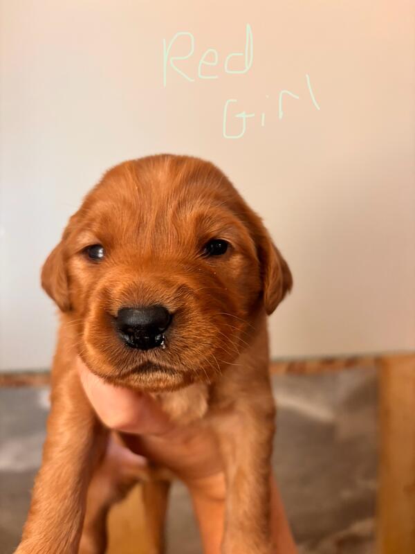 AKC registered red golden retriever puppy will be ready to go to their new home October 4th. Puppy has already been vet checked once and will have their official vet appointment on September 27th. They will be sent home with full AKC regristration, dewormed, and all first vaccines. Momma is on site and we will be having a meet and greet to meet your puppy and place your deposite to hold puppy this weekend September 13th and 14th