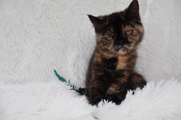 6 month old female torti. Born 5/29/25. She is very calm and cuddly. Loves to be pet and snuggled. No behavior issues.