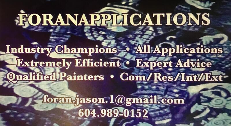 message frnjs387 about this ad -New construction -Custom homes (High end) -Repaints -Heritage Restoration -Residential Restoration -Commercial Restoration -Industrial Restoration -Deck restoration/refinishing etc -Specializing in near auto body finishes on various surfaces without spraying in the water -Scaffolding set up/take down -Drywall patching/wall leveling/skim coat/popcorn ceiling repair and texture matching etc -Spray finishes of most types as well custom spray finishes -Commercial spraying (airless/gravity fed/hlvp etc -Fully qualified on all types of scissor lifts/4x4boom lifts (Int/Ext) -Excellent reading of blueprints and plans -Proper job staging, organization and production -Level 1 First aid/CPR/AED level A Certified Servicing the Sunshine Coast and surrounding islands since 2008 backed by 25 years experience. Now serving the North Shore and the greater Vancouver area. In the past Ive loaned out my skills to Fortis BC metre testing facility where I was the project foreman for 20 guys. I also worked as project foreman lead estimator for Decor8. The reasoning behind this is because I definitely know what Im doing. Im one of the best in the business. With my company no question you get what you pay for 100 Why hire large companies that pay unqualified guys $20 an hour to do your jobs and when you can hire my owner operated company. Top quality and speed with meet or beat pricing and excellent customer service. I really care about what I do and it shows in every job I do. If you want the big names, go ahead. If you want the best, you hire me. I am a perfectionist and we take pride in our work. I dont ask my clients to work providing me with public reviews tho my reviews are verifiable. I have a large book full of very reputable references of which you can call available upon request. (604) 989-0152 Jason Foran Foranapplications message frnjs387 about this ad |