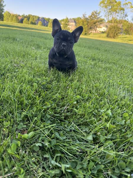 message frenchiebrs about this ad French bulldog female black with a tan up to all her shots ready for adoption four months old AKC registered amar 440-320-9197 |