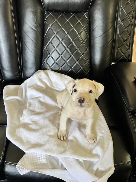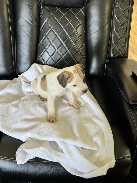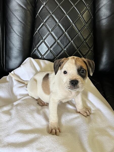 Dad is American bulldog and mom is pitbull. Text asap for new puppy. 734-799-3951 in need of new home.