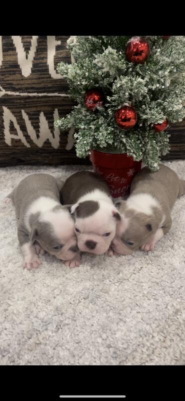 message blueribbonbostons about this ad I have a litter of 3 AKC Boston Terriers puppies born on 11/18/25. Both of the Lilac colored are boys and the Brindle puppy is a girl. They will be up to date on their shots when they go home. Both parents are in the house and the puppies are raised around children. 734-231-2519 cash, pay pal, zelle, venmo |