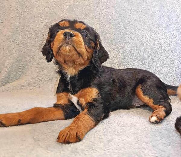 message jcalahan about this ad 3 month old Cavalier puppies. Born January 8th.2 males available. Beautiful black and tan babies. They have been wormed and have had first shots. Raised in my home. Parents are our pets.Ready for their forever home.call or text for more info 606-310-0490. |
