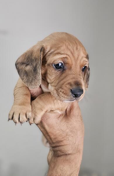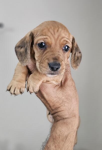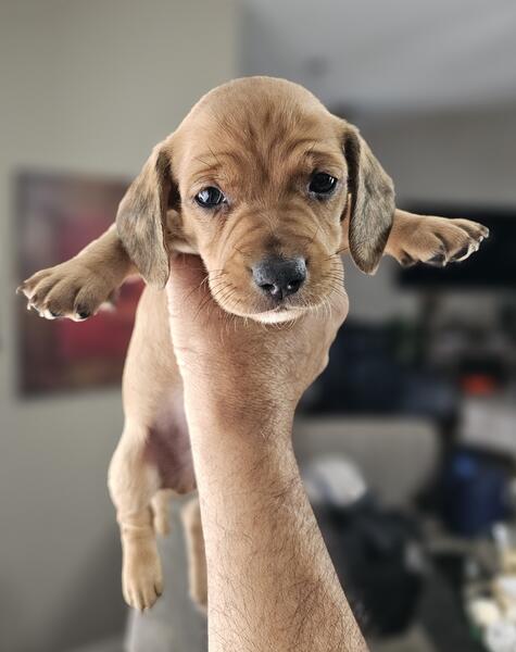 Male short hair shaded red mini dachshund. Ready to go home on August 30th.
