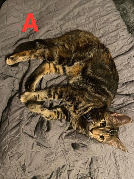 message kgcattery about this ad Bengal/ Maine Coon Kittens available and ready to go to their new homes. Mother is 50% Bengal 50% Maine Coon dad is 100% Maine Coon A. Born on 5-23-25 FEMALE last one left of this litter. She can be playful when engaged but loves to take naps and cuddle up at night. She might lick you to death. B. Born on 7-15-25 MALE He is Lazy, likes being in hammocks and in high places to take naps. Will lay and cuddle with you and likes to be held like a baby. |