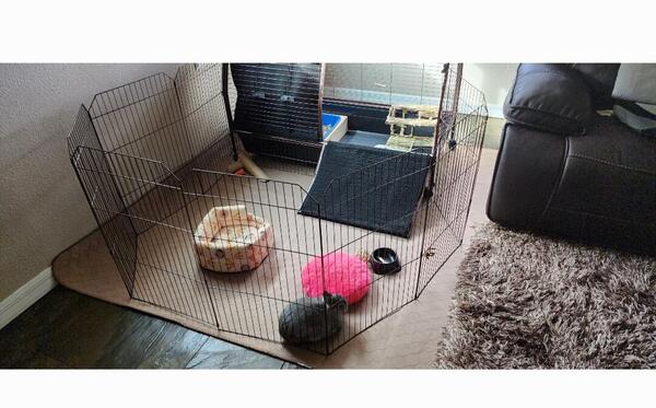 message clnfr910 about this ad A wonderful grey Netherland dwarf pet rabbit for sale. He is house keep and litter box trained. He is very gentle and loves to play or just chill in his bed. The price will include all of the items in the picture. His cage with attached play pen, his bed and blanket, his litter and feeding station. He is used to eating hay, pellets, and organic greens. He is three years old and has been fixed. |
