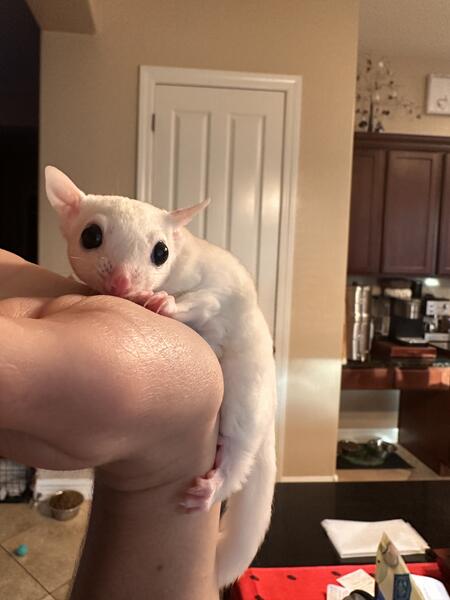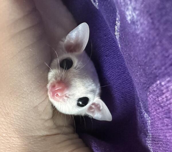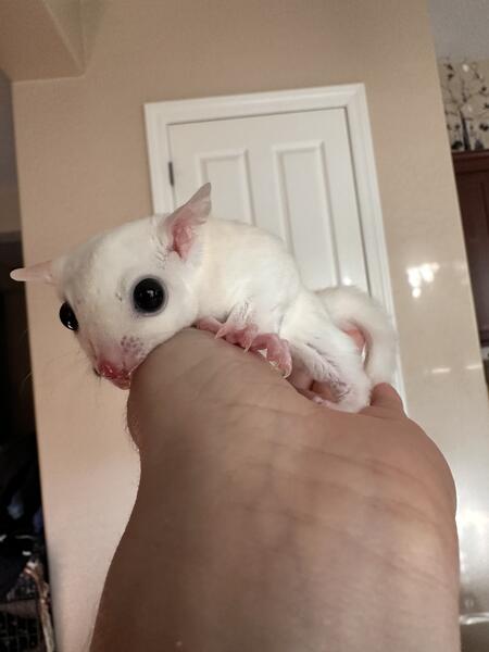 message klasse09 about this ad Sugar glider joey male leu white - $400 Sugar Glider Joey looking for his forever home Leu (white black eyes) male was born 06/26/2025 Ready now Full lineage comes with a zipper pouch and a pouch to hang in a cage |