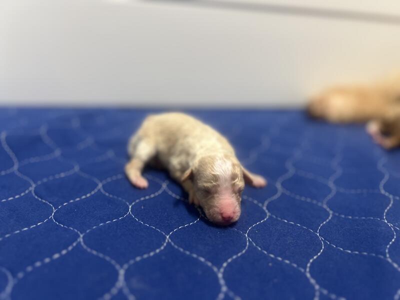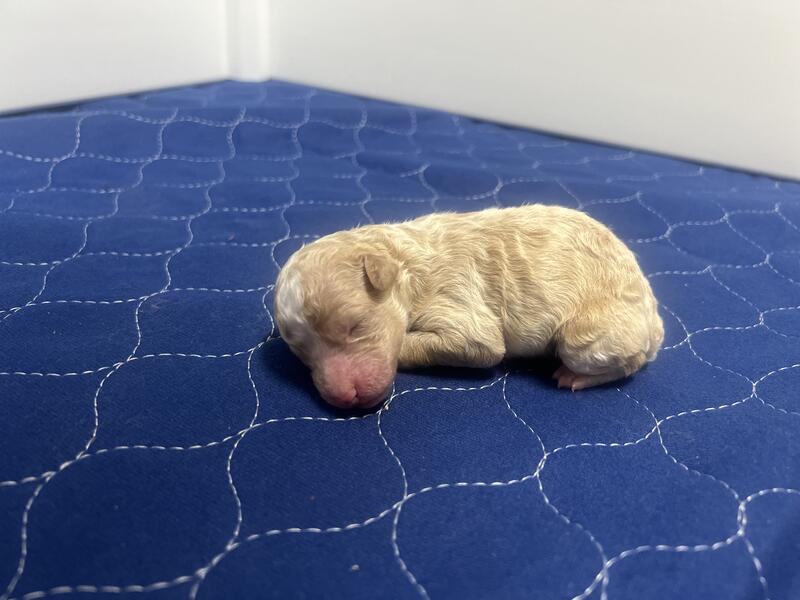 message pdpalace about this ad Cove is a cream mini poodle with abstract white markings on his chest and head. He currently weighs 9.40ozs. He is CKC registered. He will come microchipped and go home with a puppy go home bag. His Mom is a 16 lb apricot mini poodle and dad is a 12lb sable parti mini poodle. Both health teated. He was born January 3rd and will be able to go home February 28th. He will also have at least one set of vaccines. Contact 601-490-3121 for more info. |
