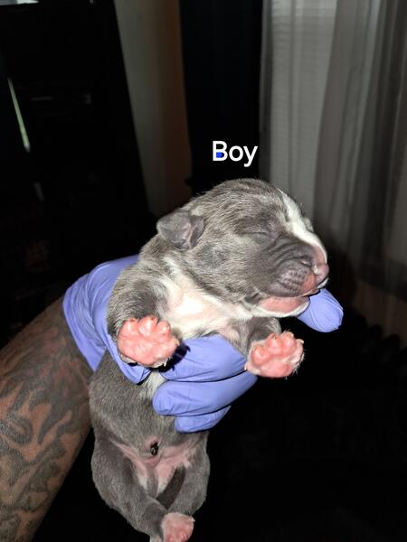 message bigsmoke about this ad I have 3 Blue boys 1 Blue Girl and 2 Merle Girls from the same litter mother is a blue Merle father a Bully XL |