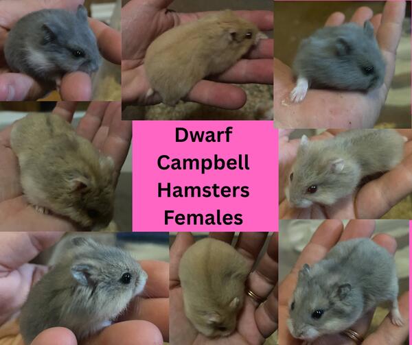 message imbri about this ad Hello! I am a small hobby breeder ready to send out our first litters of Dwarf Campbell Hamsters! These little guys have completely stolen my heart! These are the most naturally friendly, sweet, interactive hamsters I have ever had! They LOVE attention, get along GREAT with others (really! they love having friends They LOVE treats, climb into my hands, take treats directly from me, and come out to play with me! They never bite, never run away from being picked up. Just overall an amazing critter to have! You can have them in colonies (same sex groups work great - even all male groups I recommend a decent size pen with lots of bedding to burrow in. Little houses to hide in, a nice wheel, and a sand bath They are seriously so much fun to watch play each night! I personally went with the Bucstate pens but anything around 40IN X 20IN X 21IN is a GREAT size for 4-5 hamsters. You could go a little smaller for less, but they do need space to run, explore, and play in. If you are interested in learning more about this amazing little critter, or looking to add some to your home - please reach out to Amanda (me at 317- three eight five - 0205. We are in Timberville, VA but often work with transports if you are further away! Hammies are $25 each or $20 for 3+ message imbri about this ad |