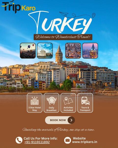 message tripkaro about this ad Discover Turkey with Tripkaros Turkey Travel Package. Enjoy 3-star stays, daily breakfast, guided tours & transport. Book your dream trip today! #turkeytravelpackage #turkeytourpackage #turkeytrippackage #turkeyvacationpackages #besttravelagencyinjaipur #besttravelagentsinjaipur |
