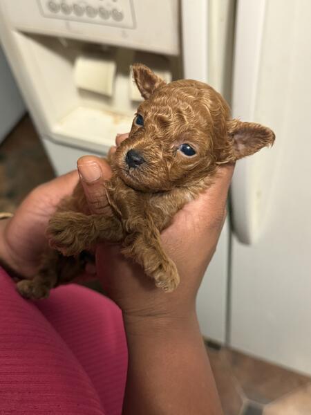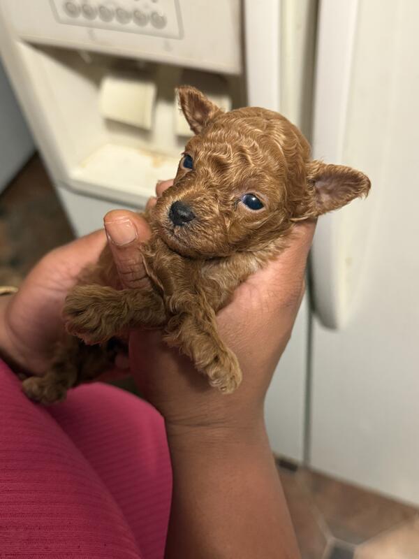 message keshonblue about this ad I have a beautiful 5 week old RED female Toy Poodle charting to be no bigger than 5 pounds. Her mother is solid Red 41/2 pounds father is 3 1/2. He is solid red. Mother is solid red and is on site and is a beautiful DARK RED She is already using pee pads LOCATED IN THE RALEIGH DURHAM NORTH CAROLINA AREA WILL NOT RESPOND TO EMAILS TEXT OR CALLS Only 919-749-5546 Asking $2000 ckc |