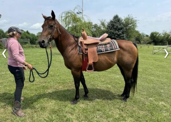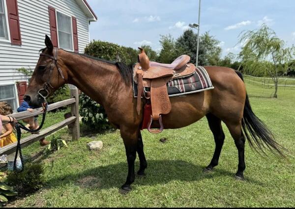 message englishgoldens123 about this ad Quarter horse mare, 13 years old. Healthy. She gets along with other horses, goats, ponies, donkeys and chickens. She is for experienced or confident riders. She is excellent with children we will lead our kids around on her ages 6-13. She went to a month long training to find out she is perfect She is truly an amazing horse, easy to catch after training. She has had a few extra training sessions which she does with excellence. She does great as long as you are not fearful. If you have fear it makes her nervous, so this is why she would do best with a confident rider. We are moving and need her gone asap. She loves to eat treats from your hand! She is easy to saddle up, and load up in a trailer. Ties, and trims easy. She is muscular and built very nice! She has a gorgeous thick winter coat in the winter. She LOVES kids! Trainer says she does great on trail rides riding front and back! A little spook if she isnt worked with. But if worked with often she is perfect! Urbana OH message englishgoldens123 about this ad |