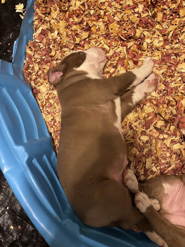 message abkcxlbullies about this ad I have 1 male American XL Bully left. He was the runt but has ended up to be the biggest of the litter. The coolest part an out him is the mermaid on his back, so weve been calling him Triton . Asking $1,500 with papers, ABKC registered . Mom and dad, both have AMAZING temperaments I can send pedigrees. Dad is a grandson of Morpheus who is a grand champion out of Idaho. These puppies will be pretty big, mom weighs about 90 lbs, dad is around 120. I require a $300 deposit, the rest due at pick up, I can hold until he is 8 weeks with deposit. If you want ears cropped that is an additional $225, which will be done at 7 weeks. I can meet halfway if you are within 5 hours of me, if you need him ship, shipping arrangements and cost will be on you. I am open to FaceTiming and you can meet mom, dad and puppies Please let me know if you need an additional information! . |