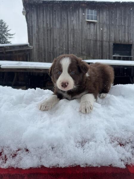 message dakota67888 about this ad Hey There, My name is Cookie! I am a very cute male Chocolate and White Border Collie puppy! I was born on September 29th, 2025. I am very curious, super intelligent, and eager to please. I am looking for my new family, could that be with you? If you choose me I will come home to you with my vaccinations and deworming up to date and I will also be ABCA Registered. I will likely have a rough coat and my eyes will be blue, gray, or two toned. I am estimated to weigh around 50 pounds fully grown. If you think that I would make the perfect addition to your family, then please call or text to find out more information about me! I am located in Richfield, Ohio! For more information about Boarder Collie puppies for sale: Call or Text 330-834-8545 -OR- Email: sales@thatdoggy.com |