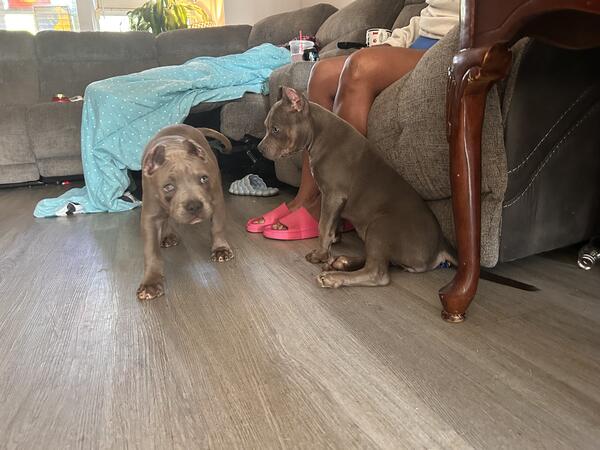 message kkaine301nature about this ad I have two solid blue females that are 10 weeks old and ready to move. The ears are already cropped puppy. Shots are up-to-date and vaccinations and the worm twice location Frederick, Maryland, and willing to drive or deliver whenever ready. Father is a Lilac tri bully Mother is a solid blue bully Txt @2029229958 |