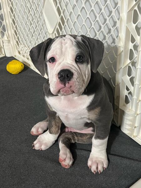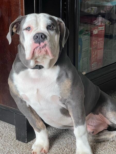 message cdamron about this ad Our Kennel is Green Sea Oldies and we have a Beautiful Blue Trindle Olde English Bulldogge available for stud. Duke weighs approximately 71 pounds. Duke is from our first litter of Wasabi Ridges Myla and the two-time Champion Heavy Diesel of Rockefeller. Duke is registered as Blue Ribbon Generational IOEBA, UCA Registered, ABKC Registered, ESA Registered, and OFA Genetically Certified. Duke is tested through Embark proving that he is 100% Olde English Bulldogge. He is also health tested through Embark. We have his IOEBA Five Generation Pedigree available. Since he is new to the scene we are offering a lower rate for now, but this rate wont last long! |