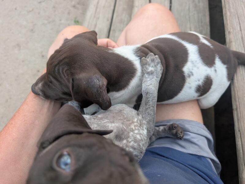 message jmfck0438 about this ad Born June 9th, 2025 AKC registered I have both Dame and Sire, both AKC 4-Females $1200 each 2- liver, ticked, patched. 2- white/ liver patched 9-Males $900 each 3-liver, ticked, patched. 6-white/liver patched |