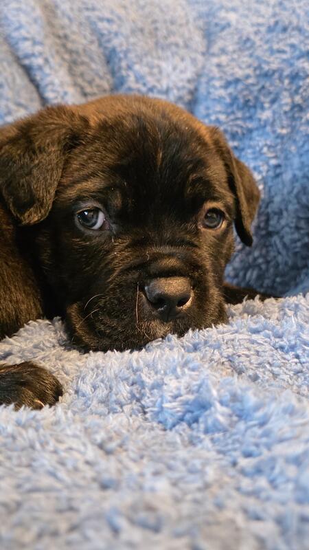 5 cane corso pups born 11-19-2025 ready to go January 14th! ICCF Registered tails docked. First shots.