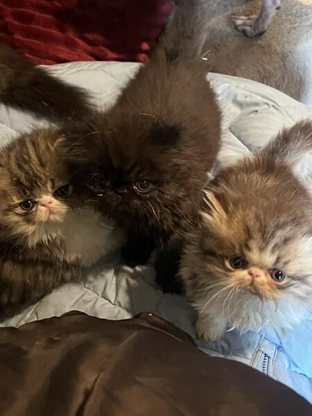 message kemproger about this ad I have two males and one female . They won't be ready for a couple more weeks but i'd like to get homes lined up . They are all extreme faced . I have a brown and white male a brown and cream tabby and a black female who has white speckles . They will come neutered and spayed along with distemper vaccines. please text me with any questions (309) 619-7207 Female is no longer available. Two males left for deposit. |