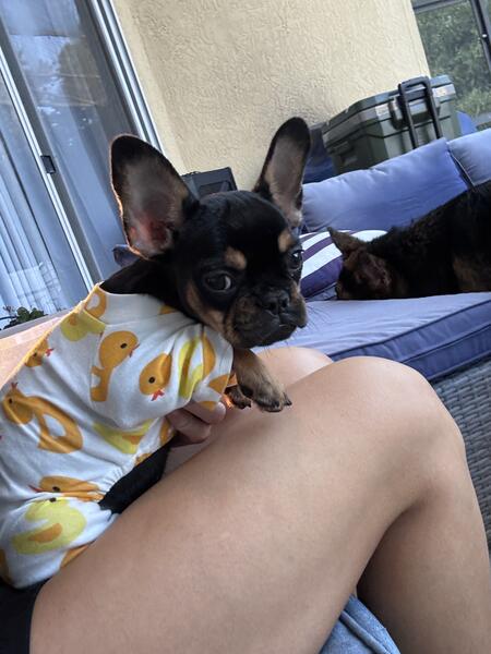 message lnfrenchies about this ad 5 month old tiny, black and tan fluffy carrier frenchie. I recently purchased her but my other dog does not get along with the puppy. Not fair to this gorgeous girl! Shes incredibly sweet, loving and gets along great with kids, dogs and other pets. She has been dewormed and had her shots. My loss, your gain. No AKC papers, pet only. Price firm. 407-729-397six |