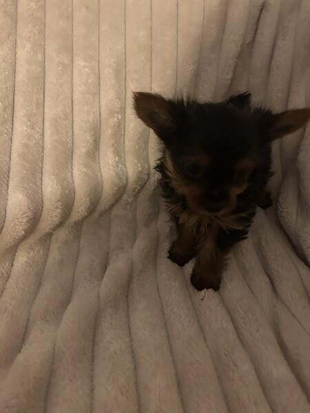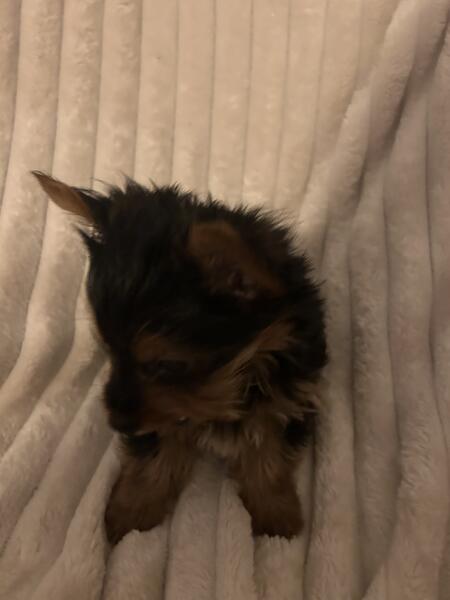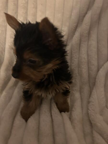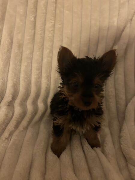 8 week old female Yorkshire puppy 1st shots, wormed, vet check twice. Black & tan $1.000.
