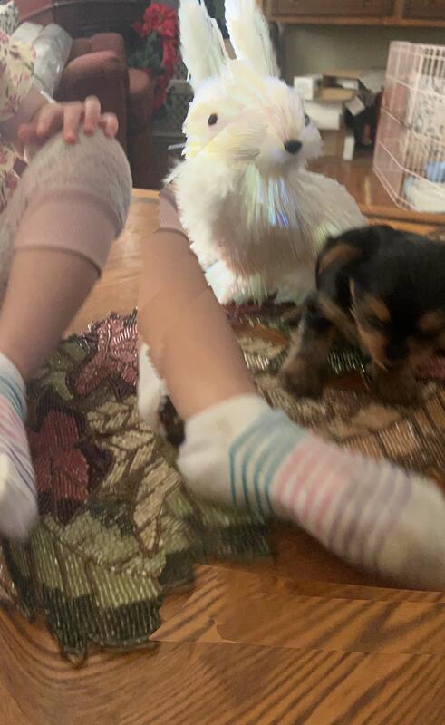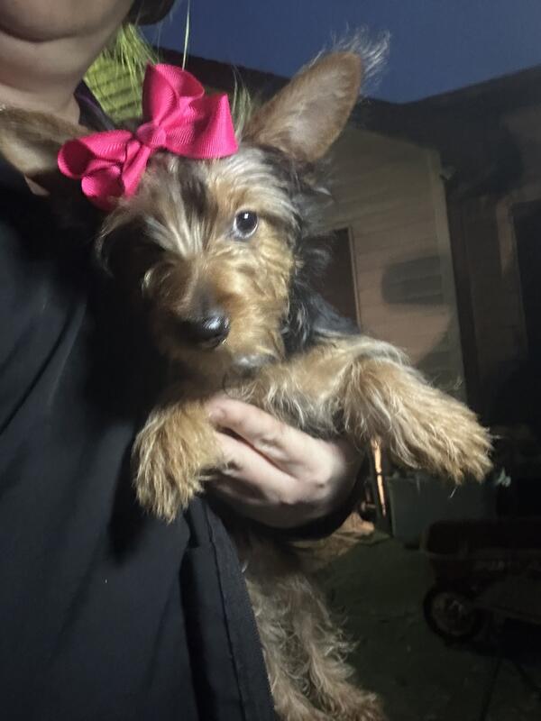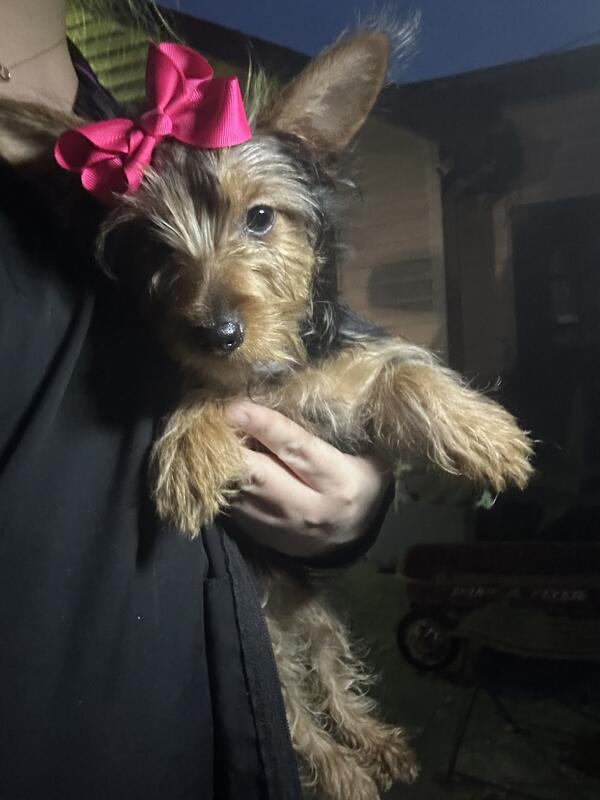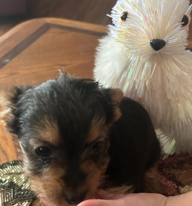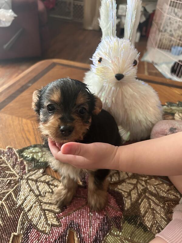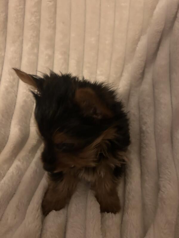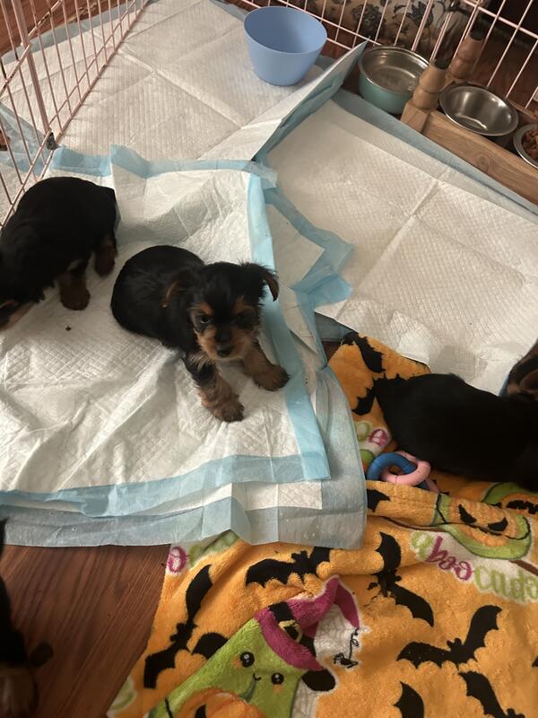 6 month old female Yorkshire puppy 1st shots, wormed, vet check twice. Black & tan $600