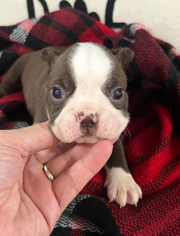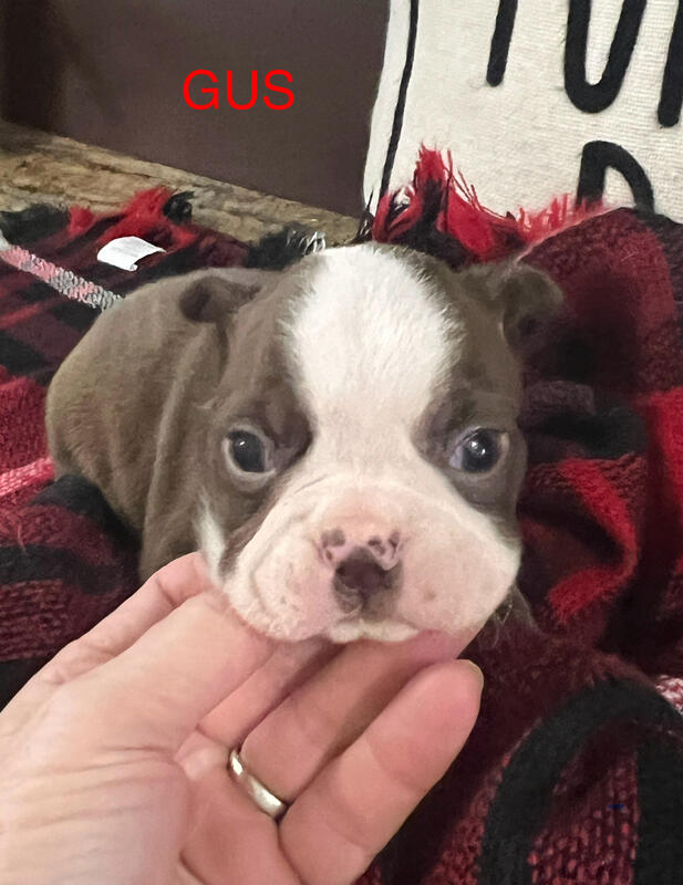 message handilyrapt about this ad Gus is the perfect AKC Boston Terrier Puppy. He has a full collar and is such a sweet comical little guy. Will be vet checked prior to going home. DOB 12-01-25 and can go home on or after 1-26-26. Will hold with a $50 Venmo deposit then cash balance at pick up. or No deposit necessary give me a call if hes available at 8 weeks come meet and take home the same day. Scammers please do not waste my time or yours. I do not send codes will not take bank checks or any other nonsense. Mom is pictured Black and White. Dad is Seal Colored. |