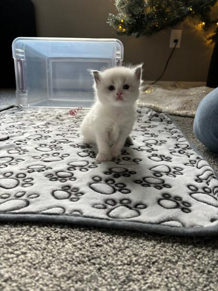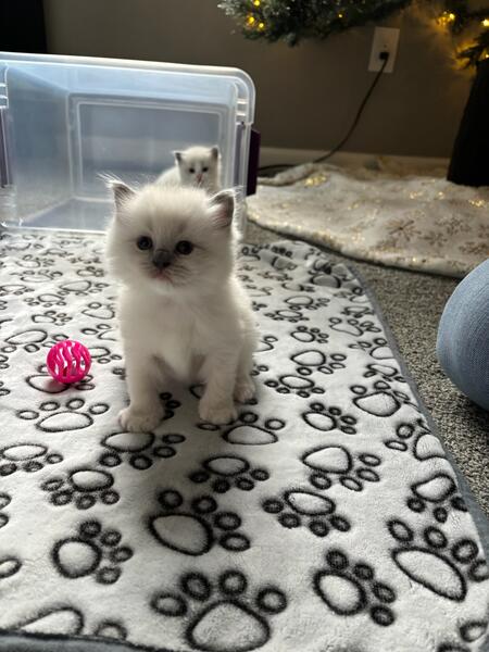 message lqupz4837 about this ad TICA registered, champion background, Lynx, blue, mitted. One is blue bicolor male kitten, two are blue Lynx one male & one female. They are four weeks old now and leave at nine weeks old. Each kitten has a TICA registered litter, health guarantee, shots. Beautiful litter. $1,500. Great Christmas gift. |