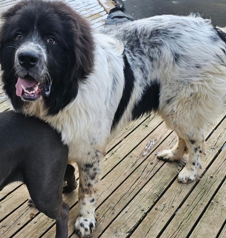 message howdydoo about this ad 9 month old male. He is a cross between Great Pyrenees and Newfoundland. He is wonderfully happy and is good with all animals he has been exposed to. (other dogs, cats, birds He is housebroken and knows basic commands. Price is negotiable to the perfect home |