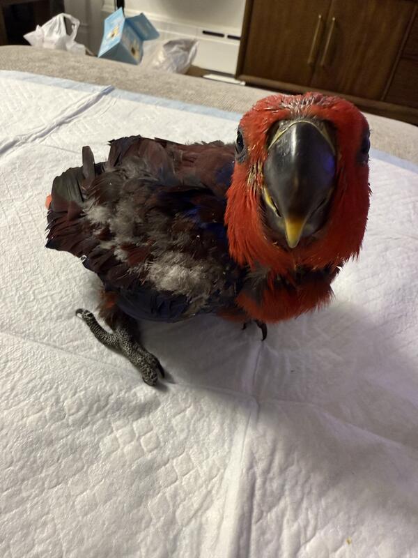 message cawcaws93 about this ad Still hand feeding(3x a day) 9 weeks old female eclectus. Shes very sweet and gives kisses, loves people. Shes making cute noises at the moment and will start talking soon. Will rehome to someone with handfeeding experience or will be ready when she is weaned. (734) 510-5667, serious inquiries only . . . . . . . . . . . . . African Grey Parrot, Budgerigar (Budgie Cockatiel, Conure, Macaw, Lovebird, Amazon Parrot, Quaker Parrot (Monk Parakeet Cockatoo, Eclectus Parrot, Canary, Zebra Finch, Indian Ringneck Parrot, Pionus Parrot, Senegal Parrot, Alexandrine Parakeet, Lory, Kakariki, Galah, Rose-ringed Parakeet, Bourkes Parakeet, Crimson Rosella, Hawk-headed Parrot, Blue-headed Pionus, Rainbow Lorikeet. |