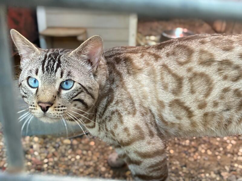 Silver snow bengal, TICA registered. Proven king. Very friendly and clean.