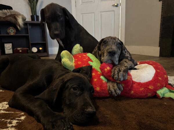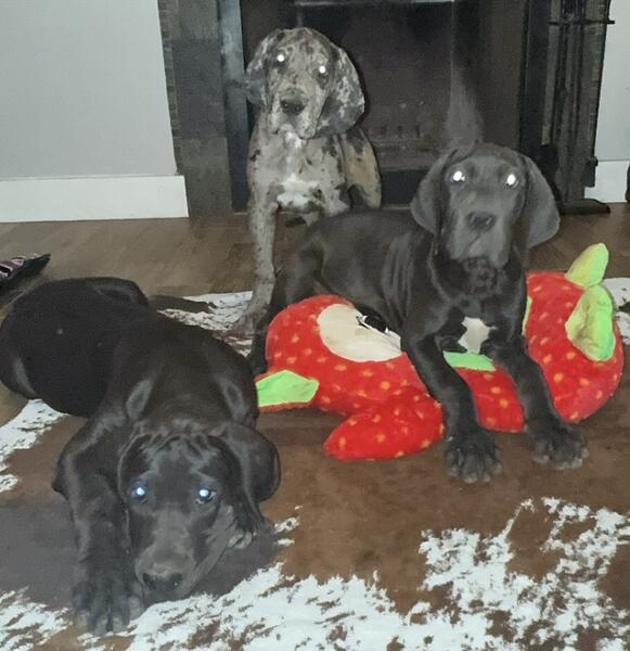 message juliannspr1 about this ad Born 3/8 Parents are health tested Puppies come with age appropriate vaccines, dewormings, microchipped, started on prevention, AKC limited registration, 30 days pet insurance through AKC, 2 year health guarantee and return contract. Merle female 2 black females Blue male- has umbilical hernia |