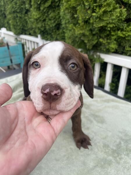 message gilbert73 about this ad We have 7 amazing American bullies that need there forever home. They were a litter of 12. 9 girls and 3 boys. Mama is a beautiful white with black American bulldog. Dad is a big 21 head XL American pit bull terrier. Their loving and loyal personalities definitely carried down to these guys. They were born on 4/20/24. Mom, dad, and all puppies are registered thru the ABA. All had their 1st vet visits and vaccinations and are all in perfect health. These are some big puppies weighing from 15-28 lbs. |